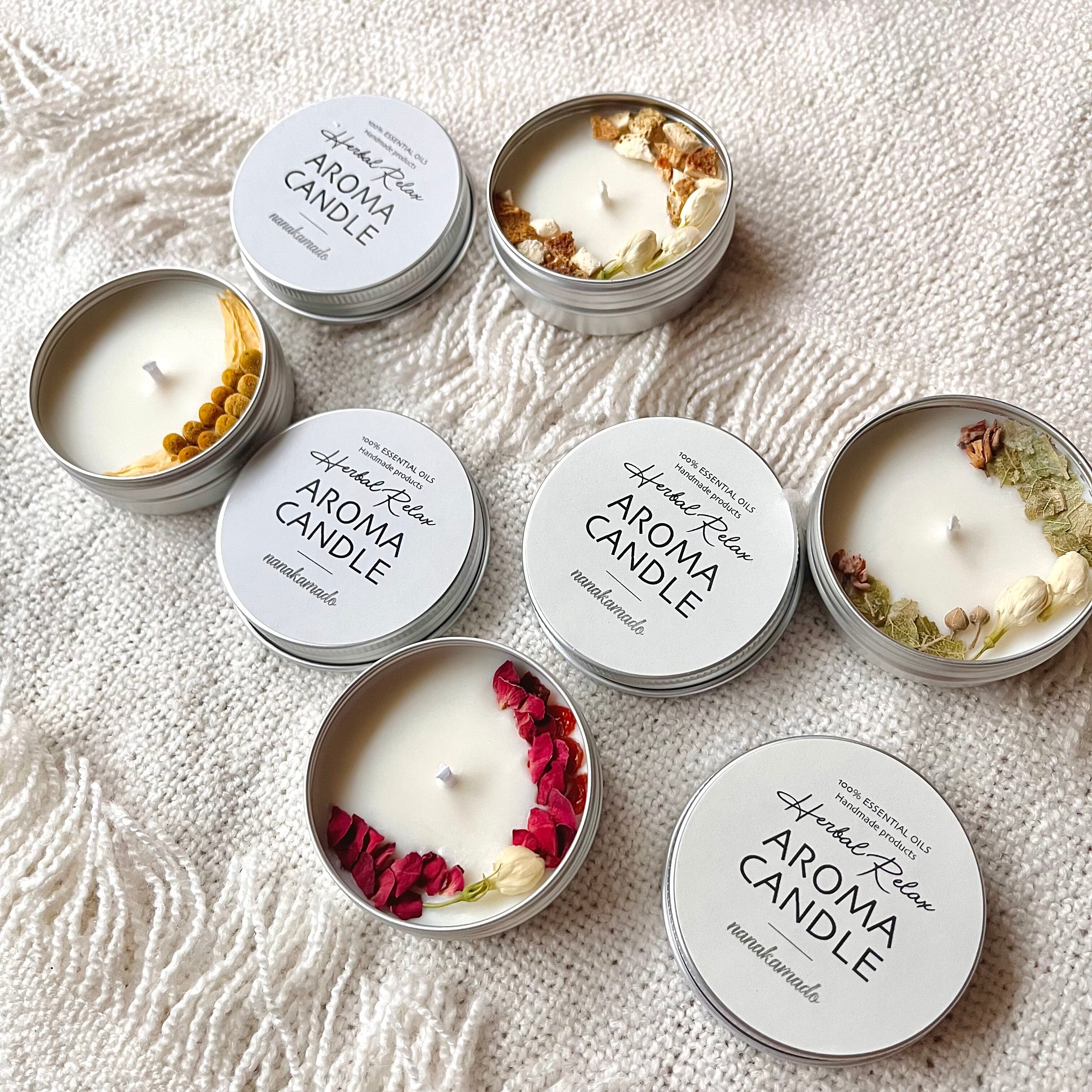 "nanakamadoのアロマキャンドル"は、アロマの香りと本物の花(ドライフラワー)をコラージュしたおしゃれなフレグランスアイテムです。